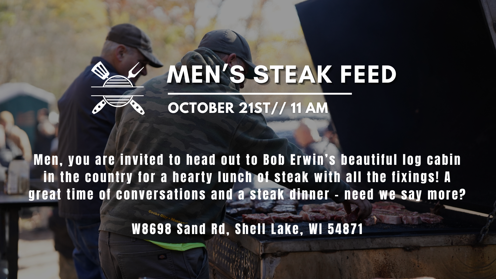 Men! Join us for the annual steak feed! We’ll enjoy a delicious meal & time together.