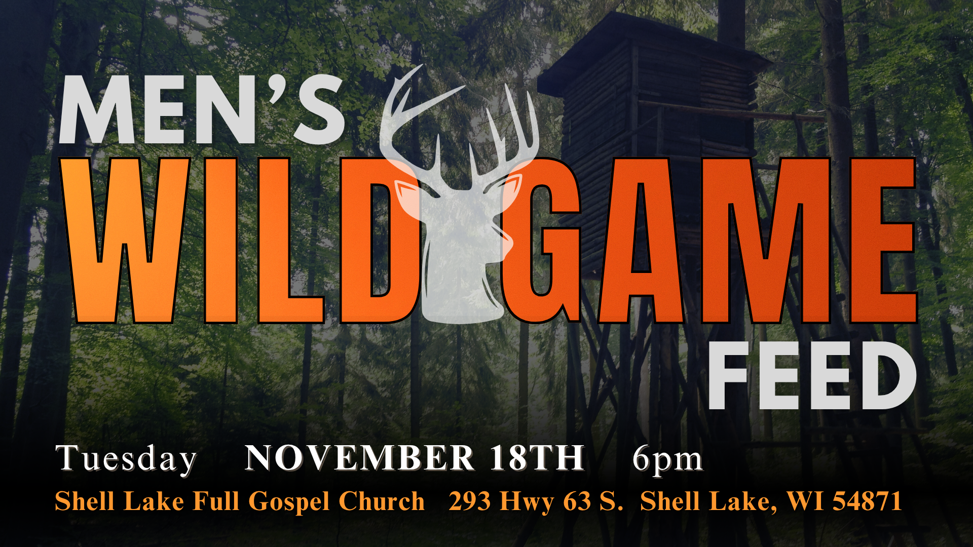 MEN! Join us for our annual wild game feed! Great food, prizes, guest speaker & more! Bring a wild game dish or dessert to share.