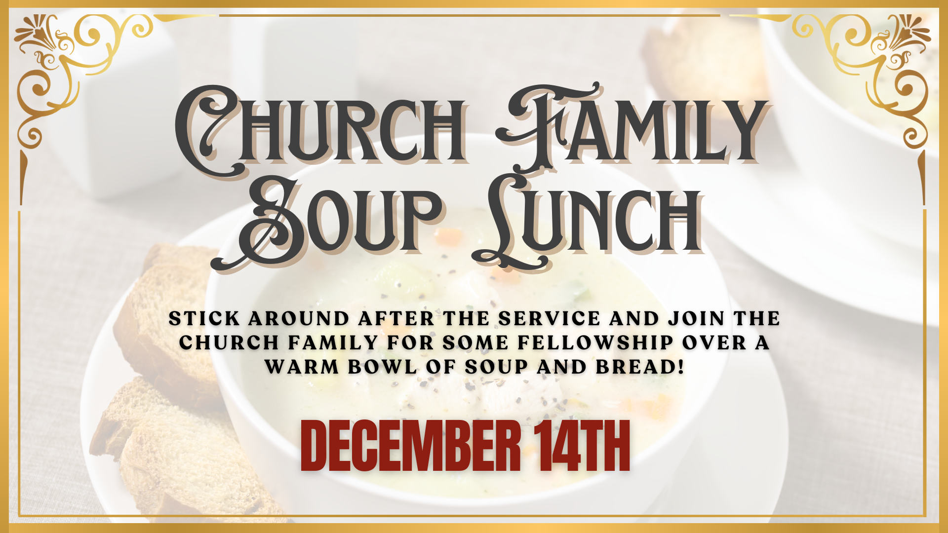 Join us for our 10am morning services and then stick around afterward and join the church family for some fellowship over a warm bowl of soup and bread!