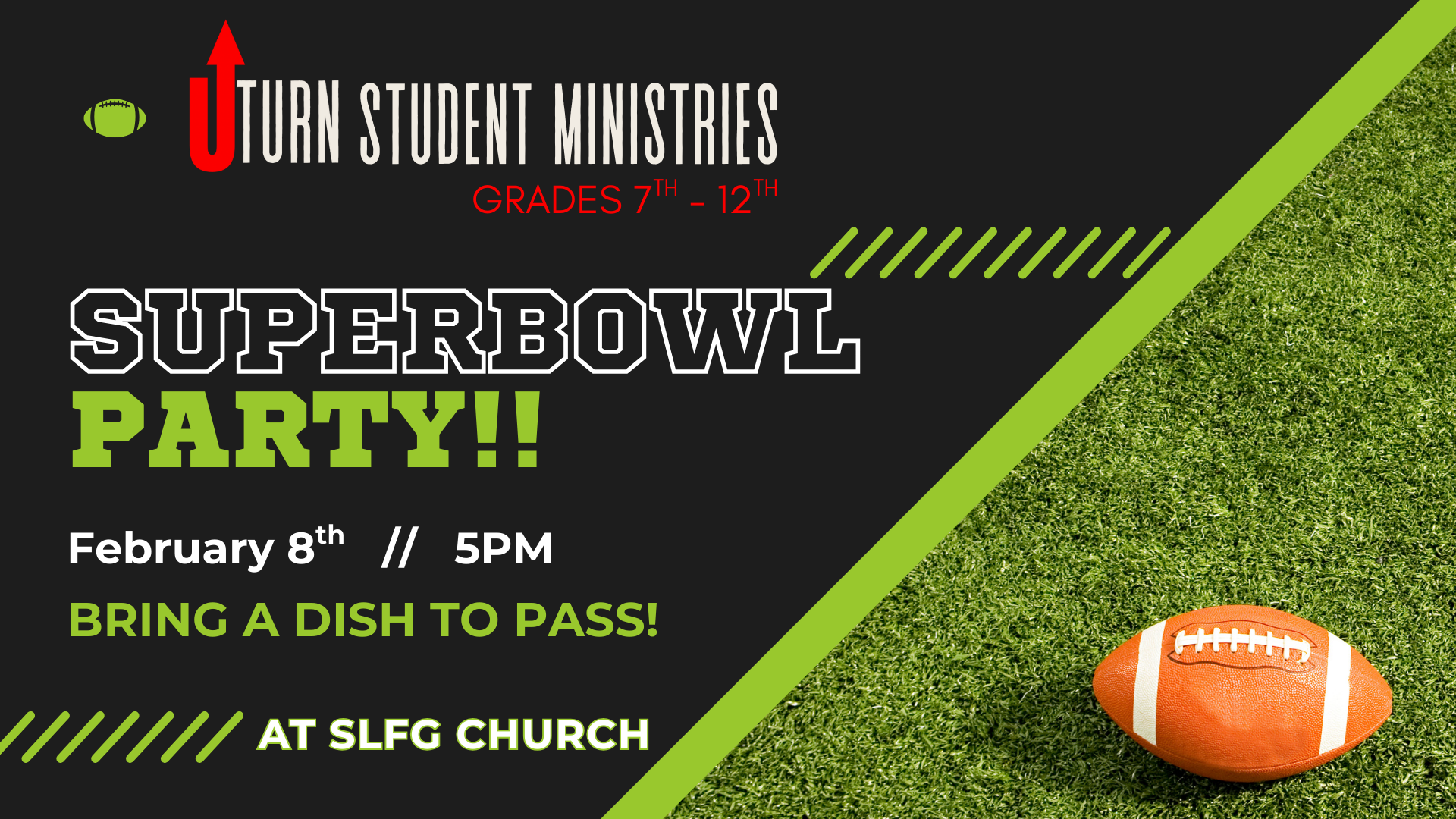 Sunday, February 8th is Super Bowl Sunday! Students will gather at the Church for the big game at 5pm. We’ll have food, fun & of course, football! This event is for students in 7-12th grade.